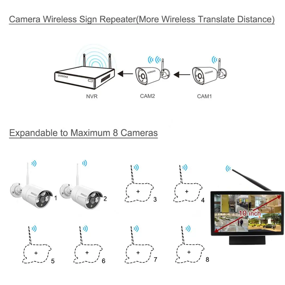 HOT SALE OOSSXX 8CH 1080P Wireless NVR Kit 10' Monitor Wireless CCTV 2pcs 1080P Audio Indoor Outdoor IP Came