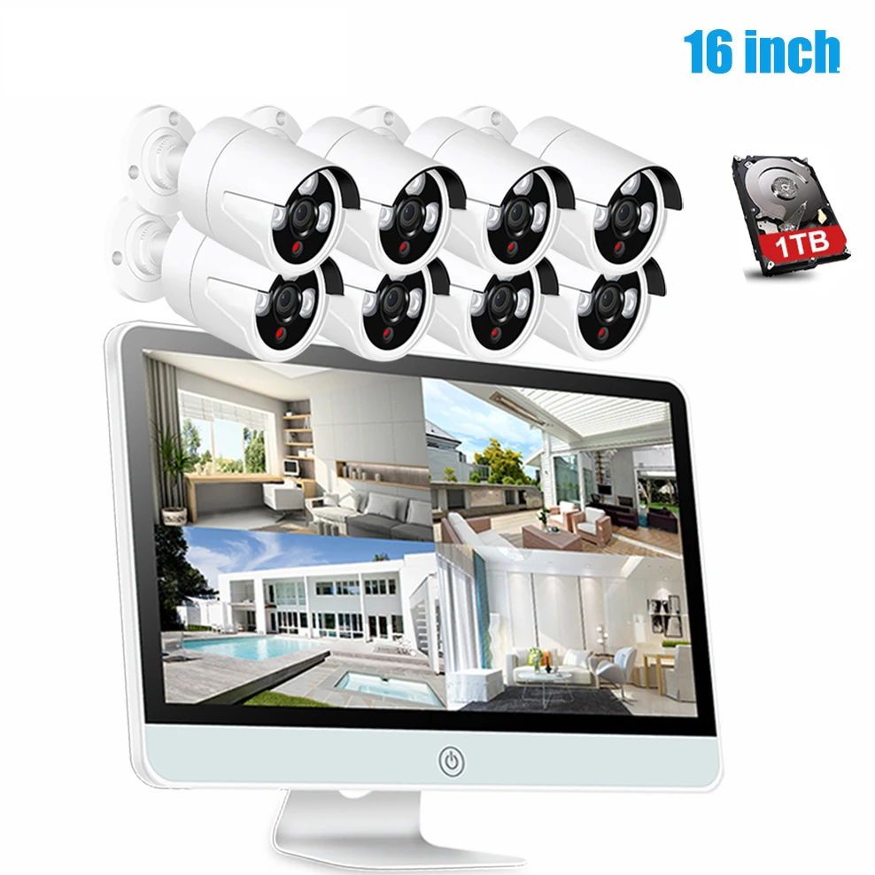 HOT SALE 1080P 8CH Wireless NVR Kit 16" LCD Monitor IR Night Vision 2MP Security CCTV IP Camera Wifi Waterpr