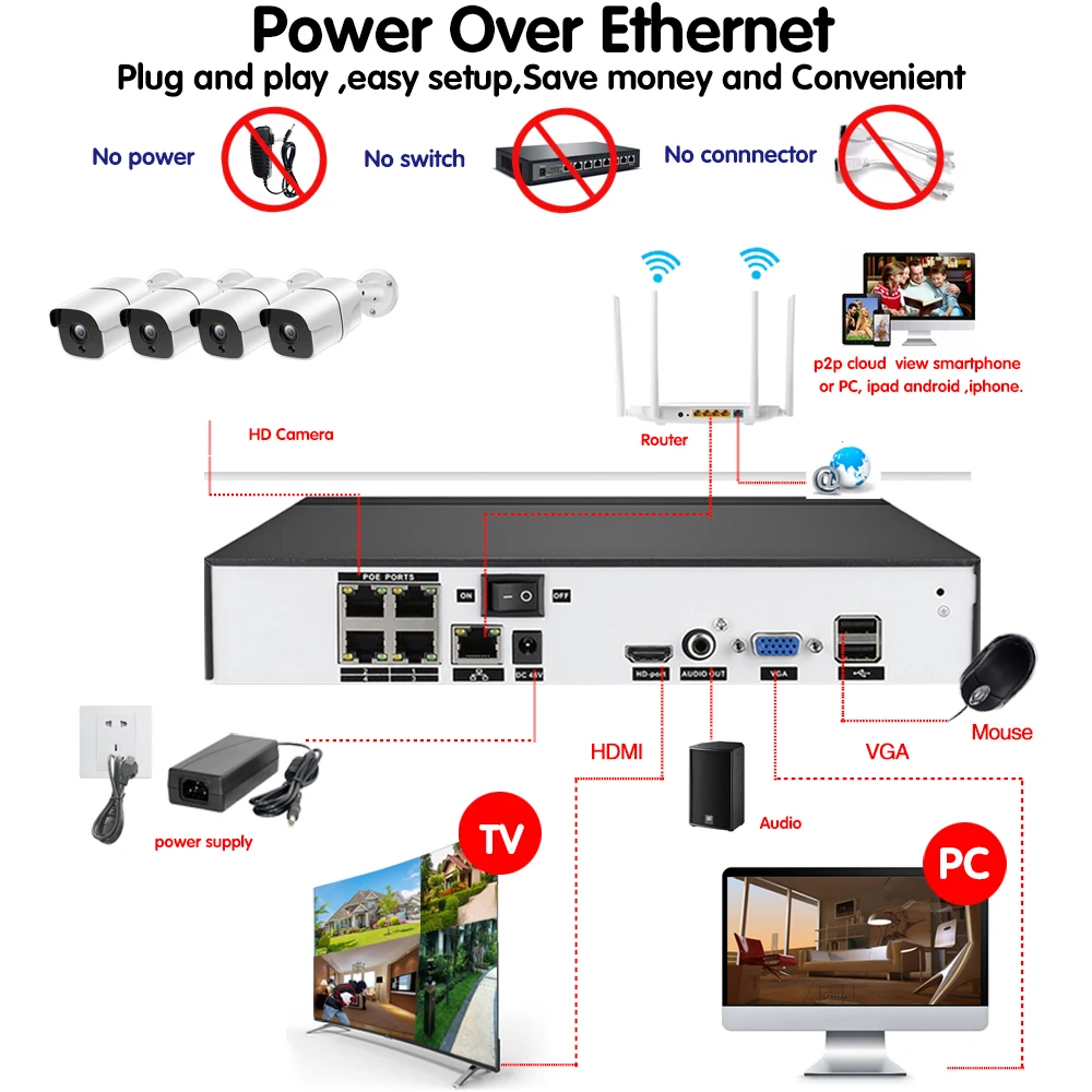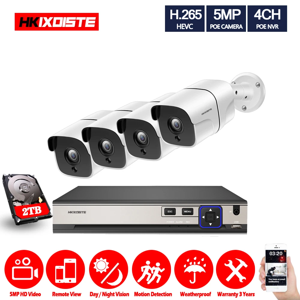 4CH 5.0MP Home Security NVR POE CCTV IP Camera System SONY 5MP 2592*1944 In/Outdoor IR-CUT 48V Surv