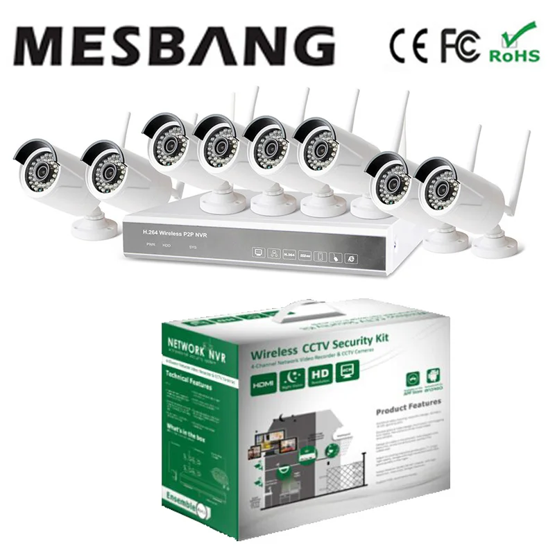 2017 P2P 720P 8 channel wifi wireless cctv camera system nvr kit 8ch easy to install no need cable