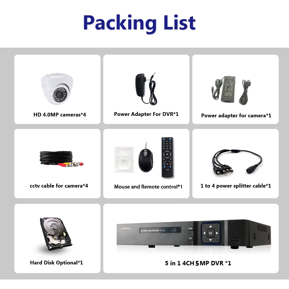 Dome 4MP CCTV Surveillance Kit Security Camera System 4ch DVR NVR 5MP NVR Video Output 40m night vi