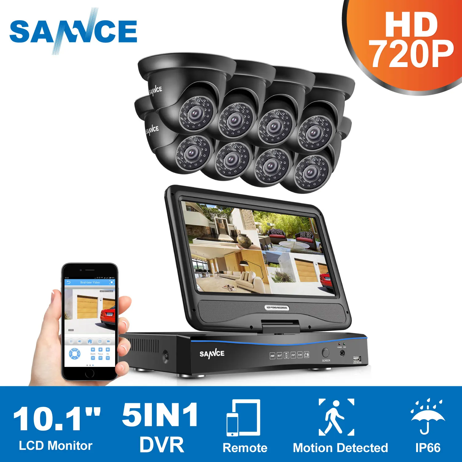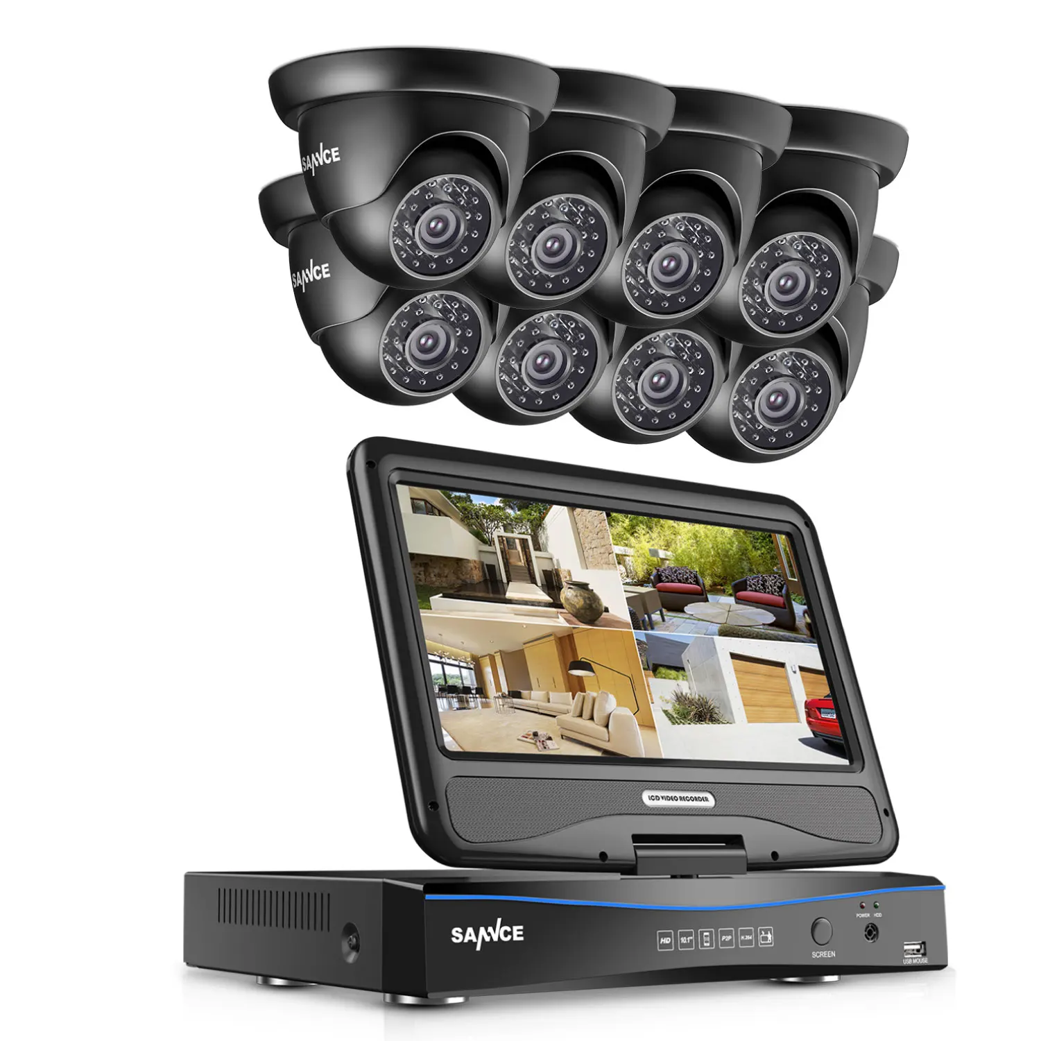 SANNCE 8CH CCTV System 10.1inch displayer DVR 8PCS 720P HD Dome Video Surveillance Home Security Ca