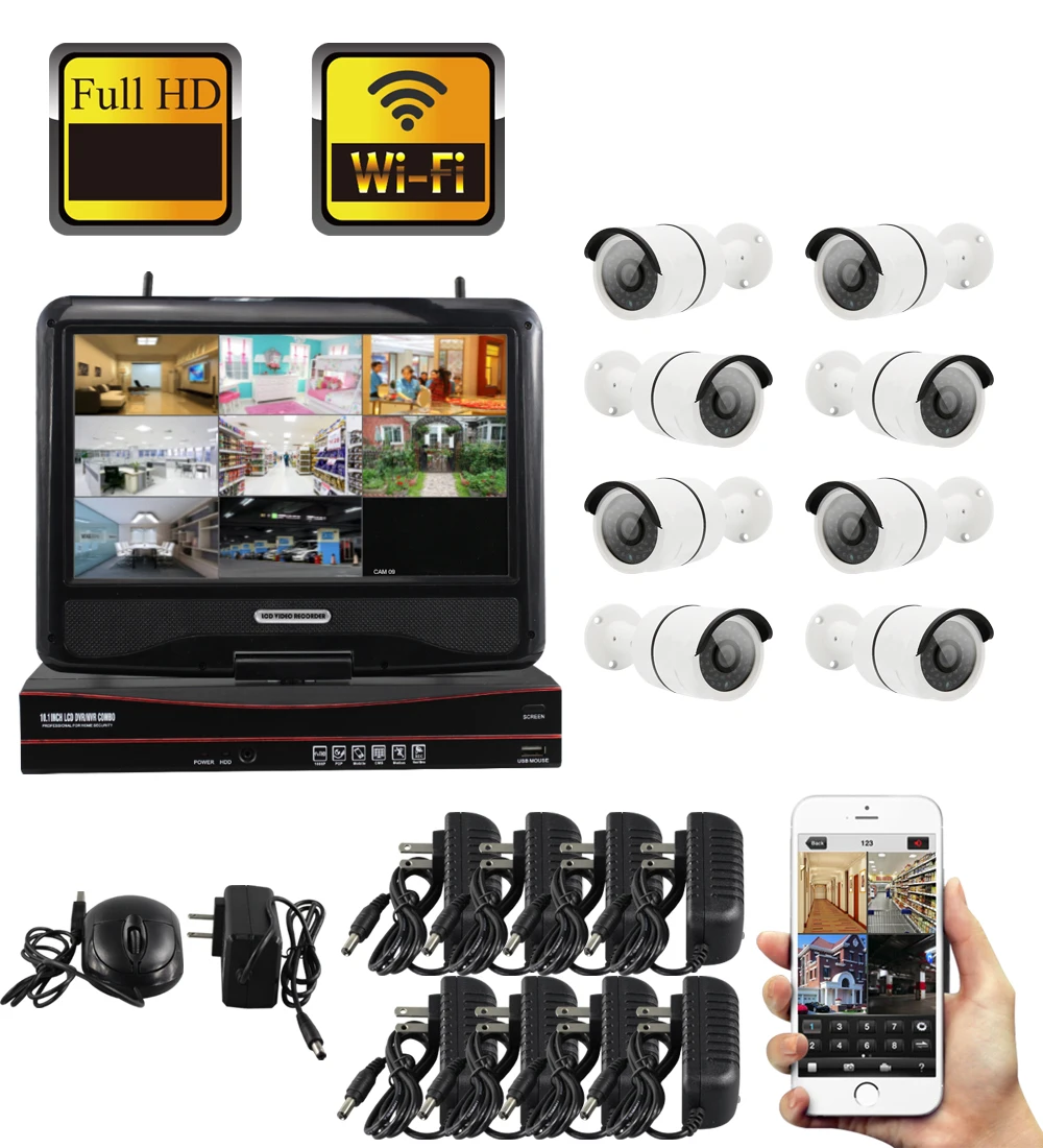 BEST SELLER SmartYIBA 10" Monitor 8CH 960P HD Network IP WIFI NVR Wireless Weatherproof Outdoor Surveillance CC