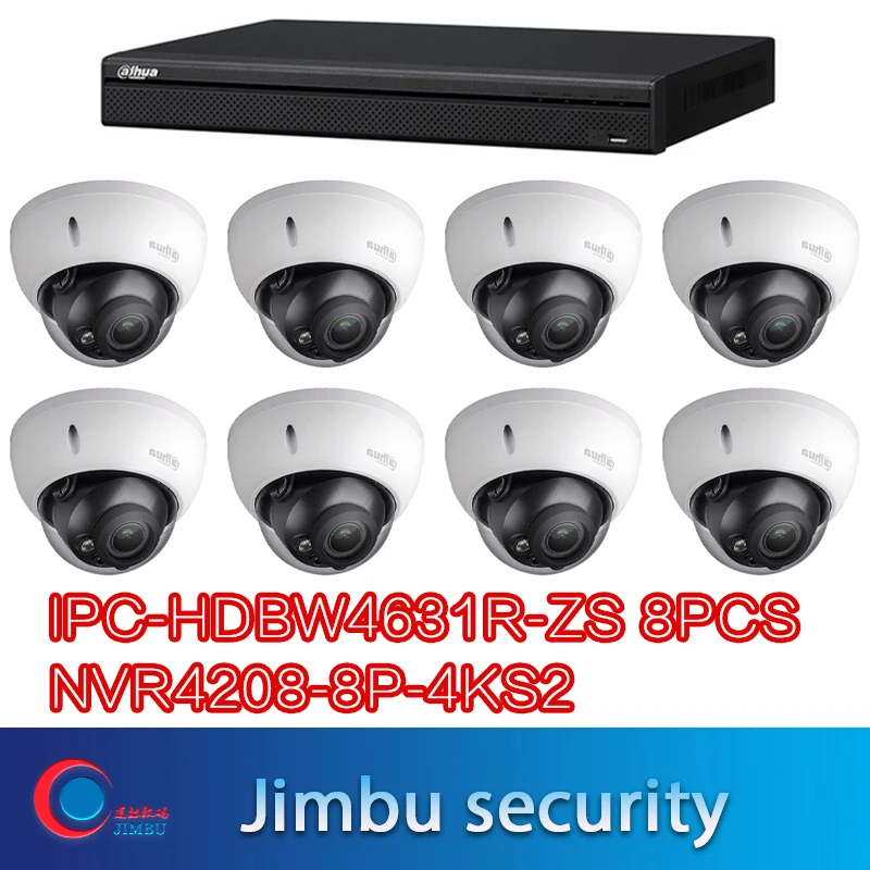 Dahua cctv system NVR 8CH video recorder NVR4208-8P-4KS2 & Dahua IP cam 6MP 8pcs IPC-HDBW4631R-ZS H
