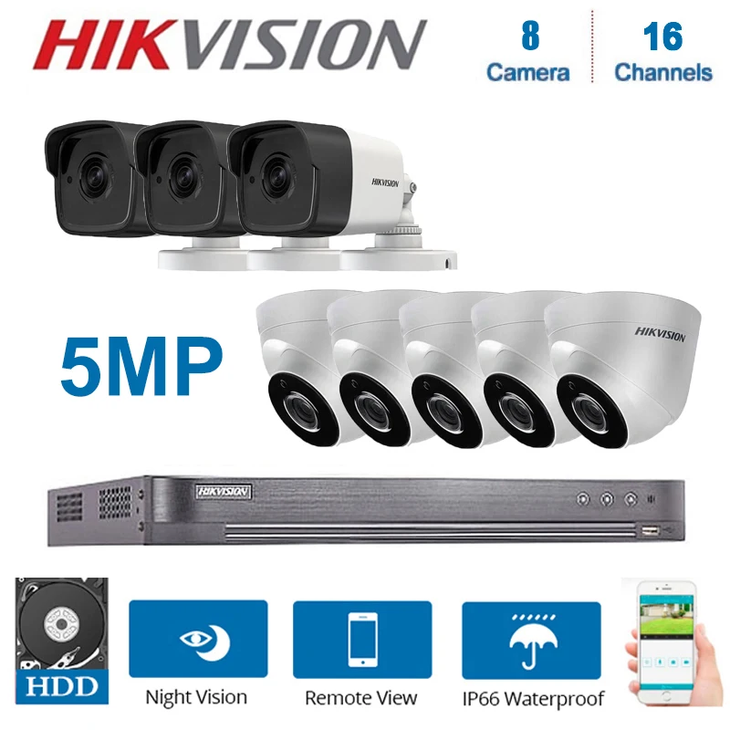 Network Hikvision 16Channels DVR Video Surveillance with 8Pcs 5MP Camera Night Vision CCTV Security