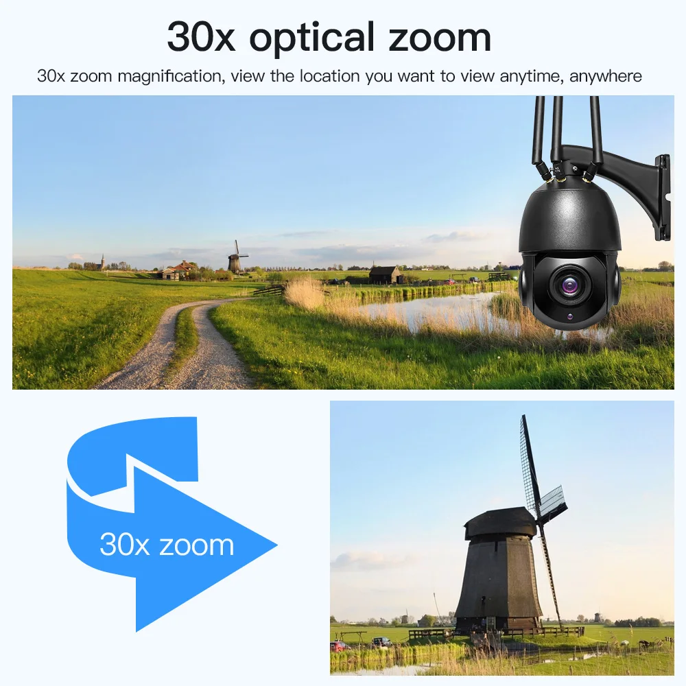 5MP 30X Optical Zoom 3G 4G SIM Card Wireless Wifi Security Camera Outdoor PTZ IP Camera Two Way Aud