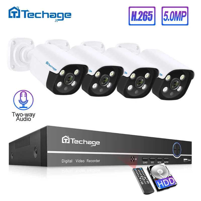 Techage H.265 8CH 5MP POE NVR Kit CCTV System Two Way Audio AI IP Camera IR Outdoor Waterproof P2P